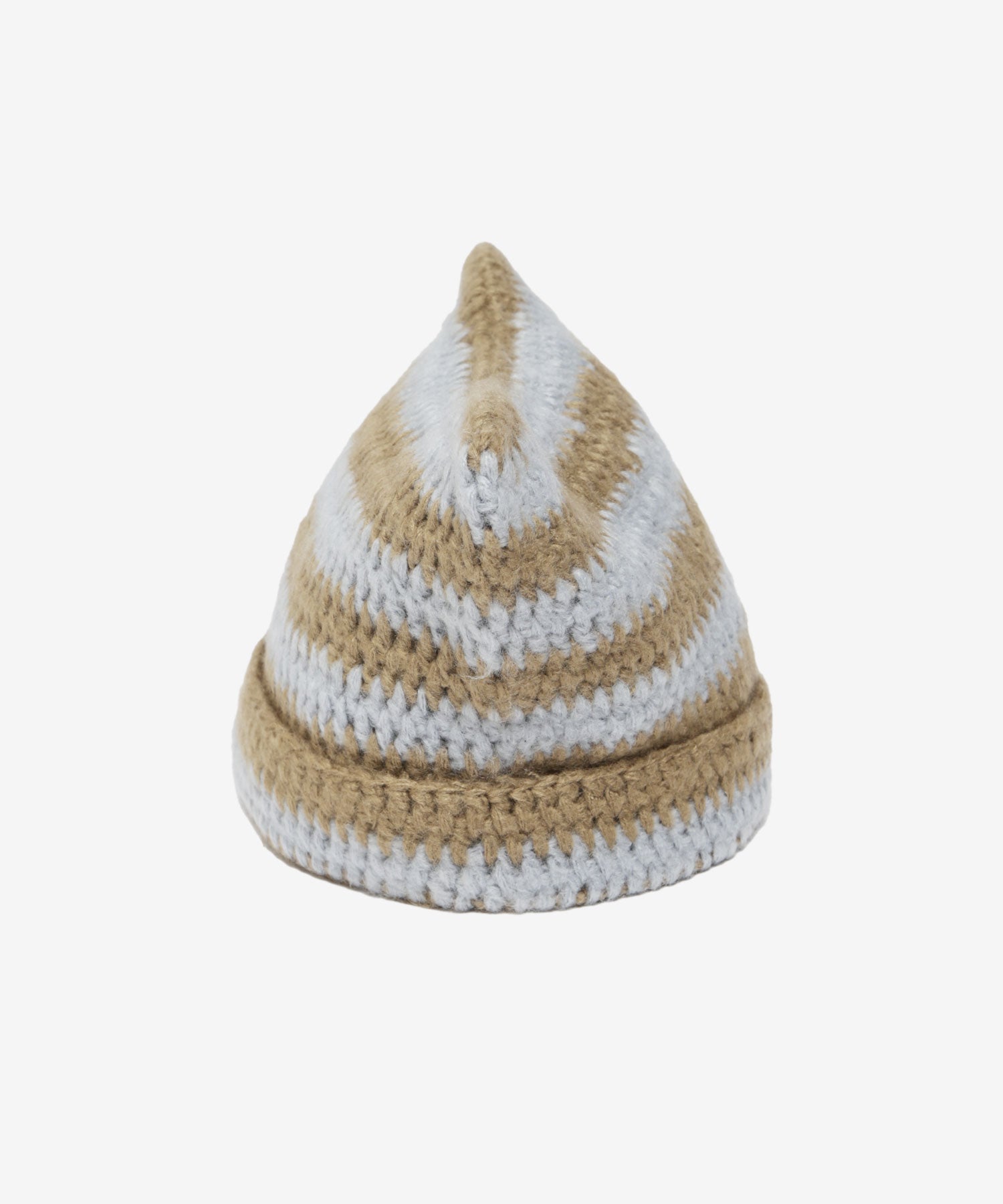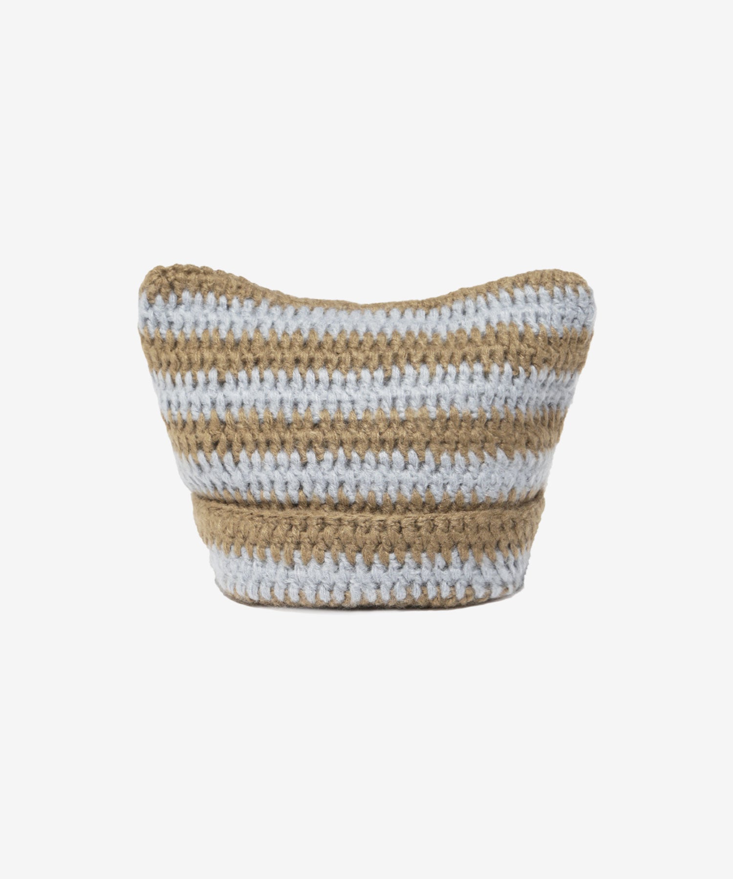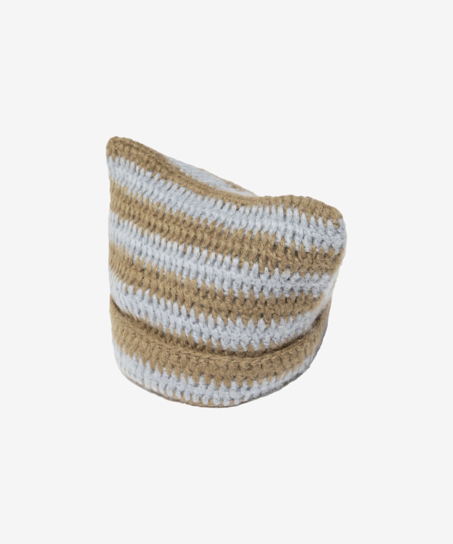 太めの糸でボリューム感を出した猫耳ニットキャップ。
