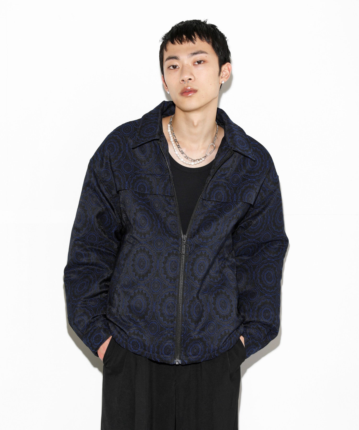オーバル柄の生地を使用したルーズシルエットの中綿ブルゾン。