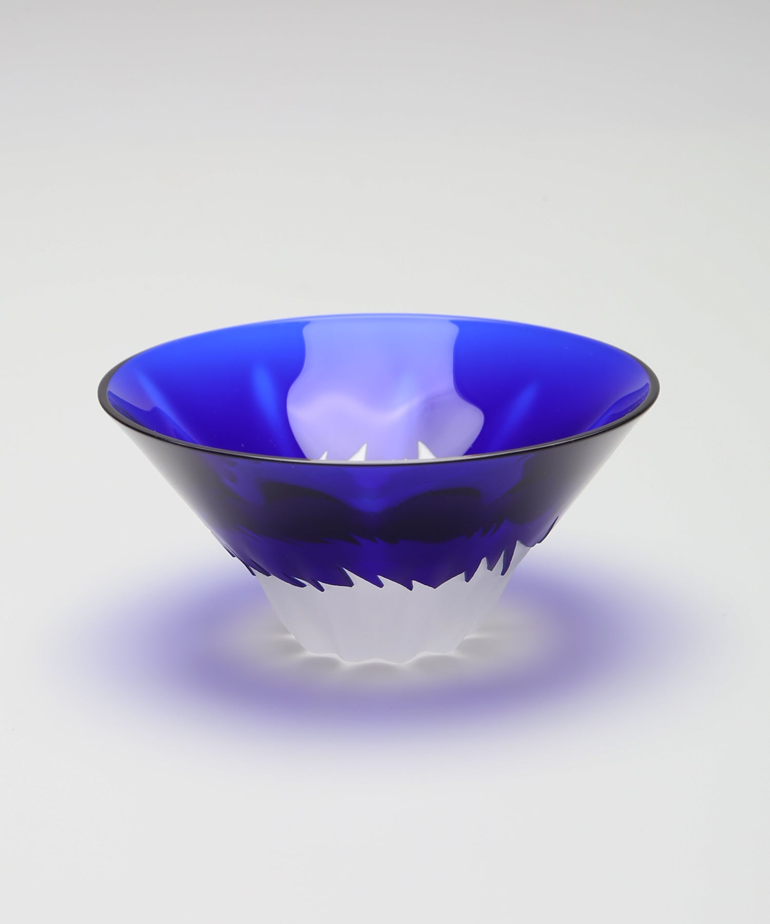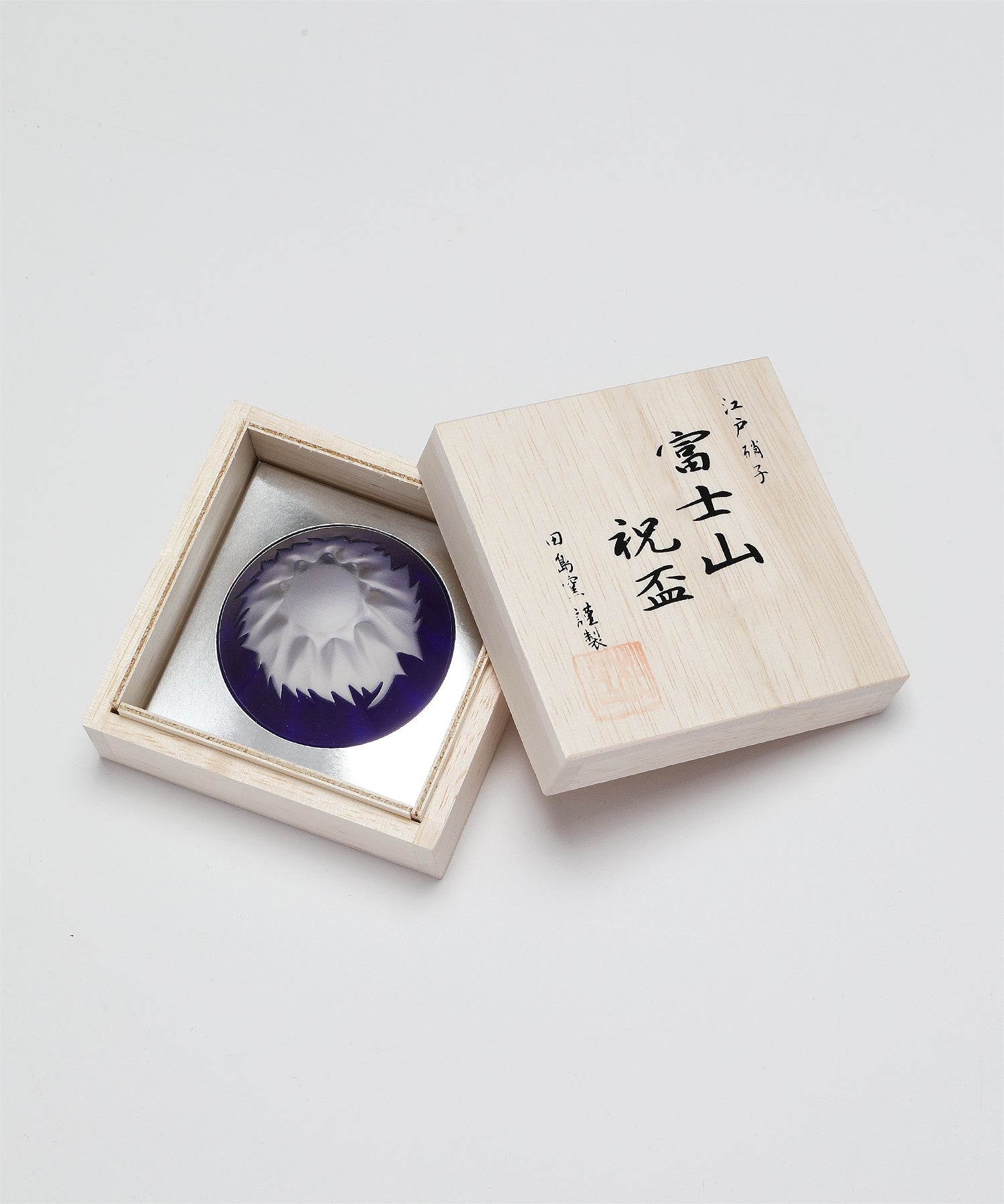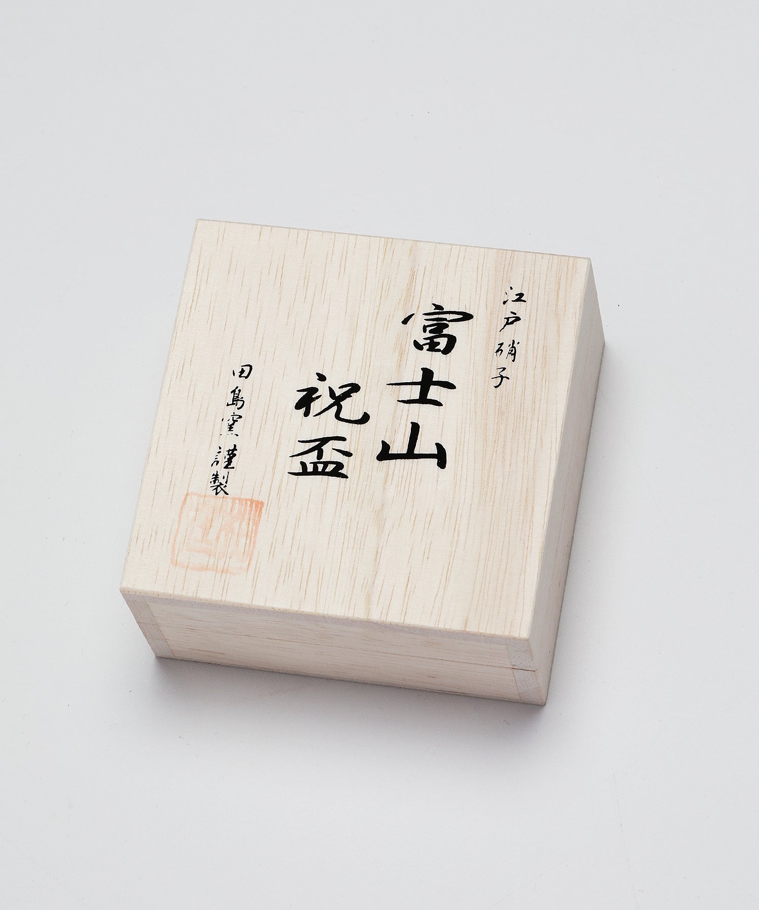 白雪をかぶった山頂を彫刻硝子(サンドブラスト)で表現した盃は、杯を伏せることによって美しい富士山の姿に。優美で荘厳な姿から日本の象徴・霊峰として世界的にも知られる富士山とその麓で産まれた美酒の邂逅を楽しめます。